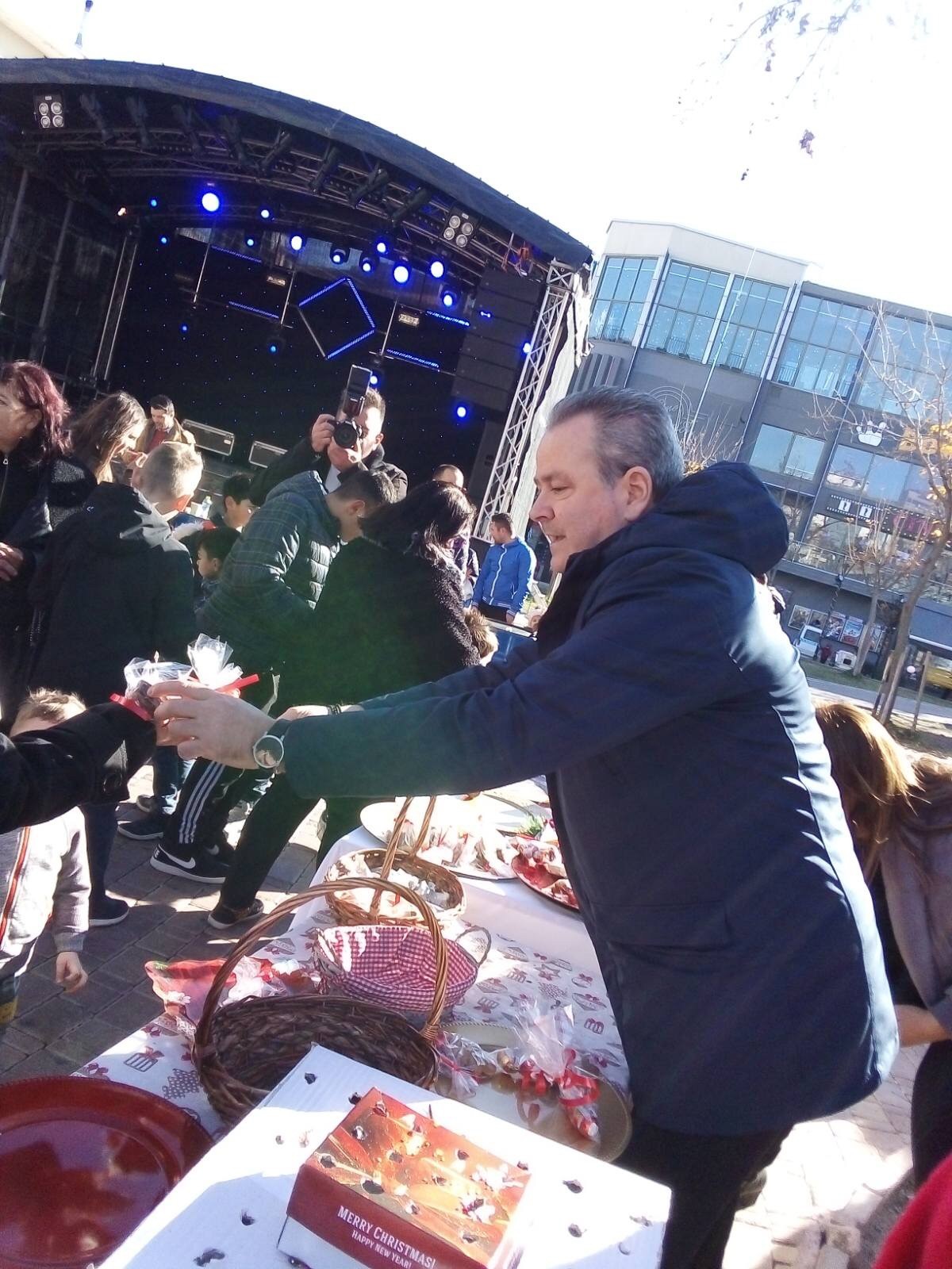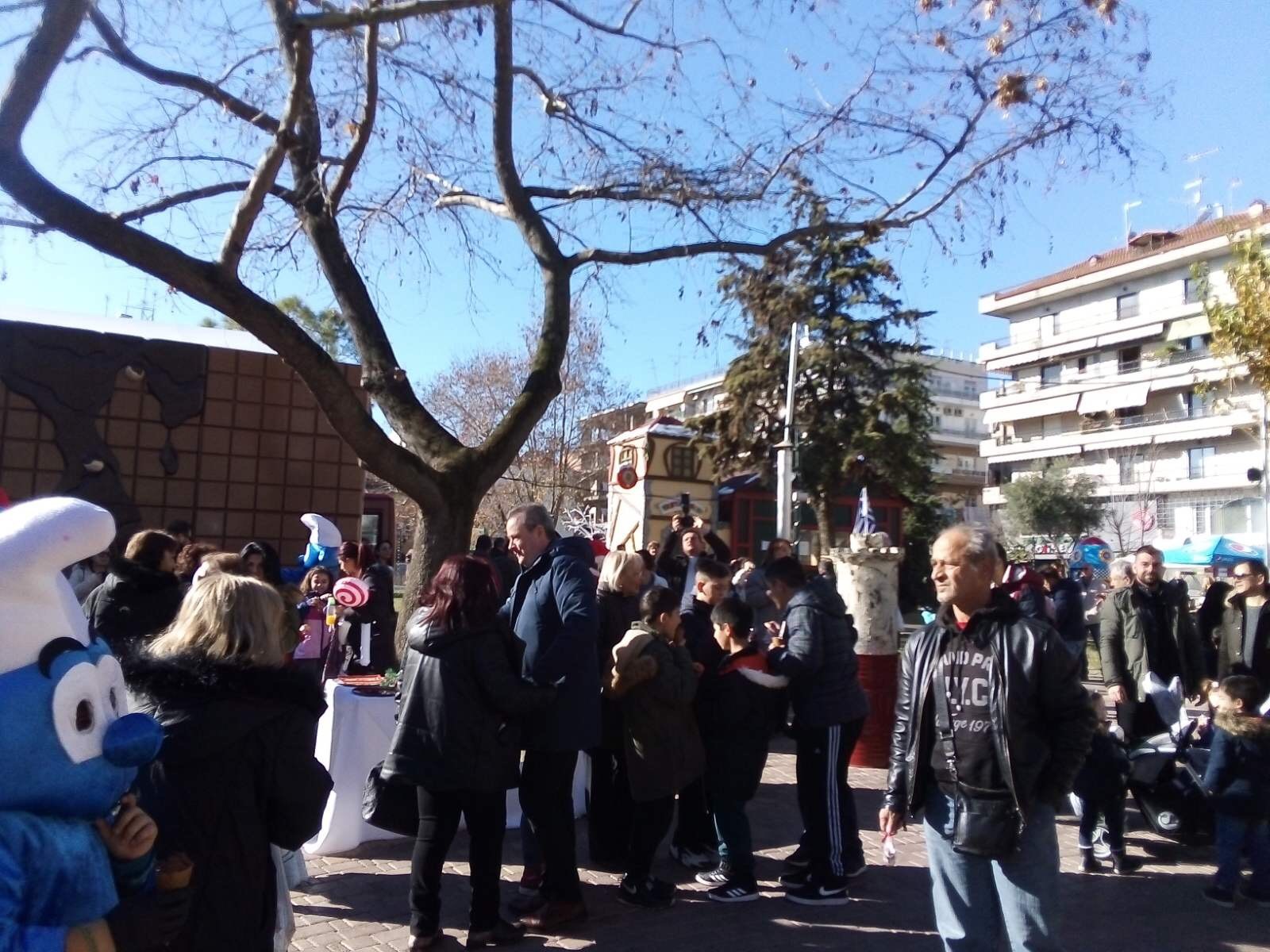 Τέλος, νωρίς το μεσημέρι σε ένα ξεχωριστό σοκολατένιο happening με φόντο το εργαστήριο σοκολάτας, ο Δήμαρχος Κατερίνης μοίρασε γλυκίσματα στους λιλιπούτειους επισκέπτες.