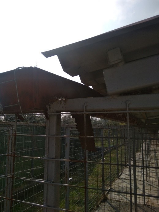 Πιο συγκεκριμένα, τα συνολικά έξι κτίρια εγκαταστάσεων του καταφυγίου (το ένα λειτουργεί ως αποθήκη τροφίμων και εξοπλισμού εμβαδού 51,30 τ.μ., το ένα ως κτίριο διοίκησης εμβαδού 110,83 τ.μ. και τα τέσσερα κτίρια αποτελούν τους χώρους φιλοξενίας των ζώων με συνολικό εμβαδό 533,85 τ.μ.) βρίσκονται σε κακή κατάσταση, έχοντας φθαρεί από το πέρασμα του χρόνου, την εκτεταμένη χρήση, καθώς και από αστοχίες στην κατασκευή.
