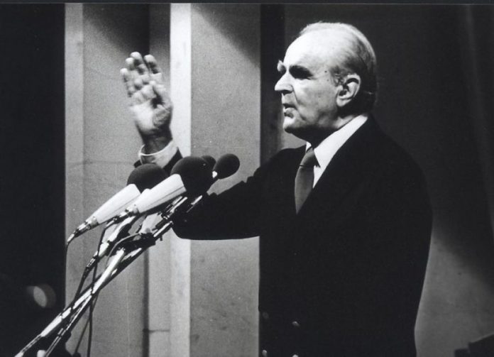 1989  Ο Κωνσταντίνος Καραμανλής κάνει την ιστορική δήλωση, σύμφωνα με την οποία «η χώρα έχει μεταβληθεί σε απέραντο φρενοκομείο».