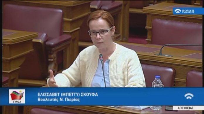 Σκληρή αντιπολίτευση στην κυβέρνηση και στην ηγεσία του Υπουργείου Παιδείας, άσκησε η βουλεύτρια ΣΥΡΙΖΑ Πιερίας Ελισσάβετ (Μπέττυ) Σκούφα, κατά τη συζήτηση του σχεδίου νόμου του υπουργείου με τίτλο «Εθνική Αρχή Ανώτατης Εκπαίδευσης, Ειδικοί Λογαριασμοί Κονδυλίων Έρευνας Ανώτατων Εκπαιδευτικών Ιδρυμάτων, Ερευνητικών και Τεχνολογικών Φορέων και άλλες διατάξεις».