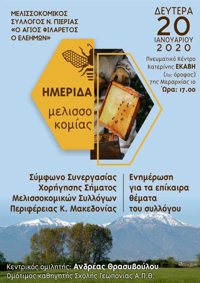Ημερίδα Μελισσοκομίας διοργανώνει τη Δευτέρα 20 Ιανουαρίου 2020 και ώρα 17.00 ο Μελισσοκομικός Σύλλογος Ν. Πιερίας.