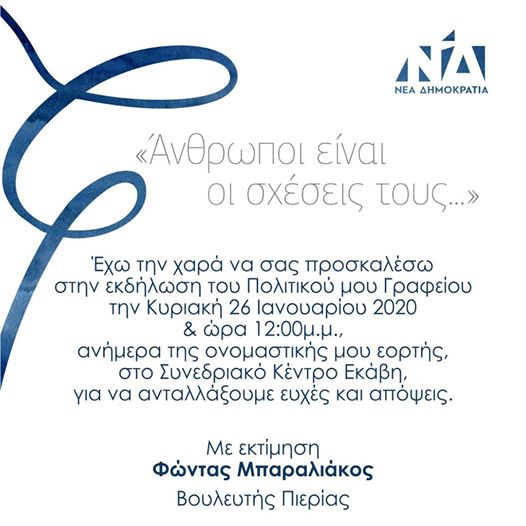 Αρχική Κατερίνη Φώντας Μπαραλιάκος: Προσκαλεί ενόψει της ονομαστικής του εορτής