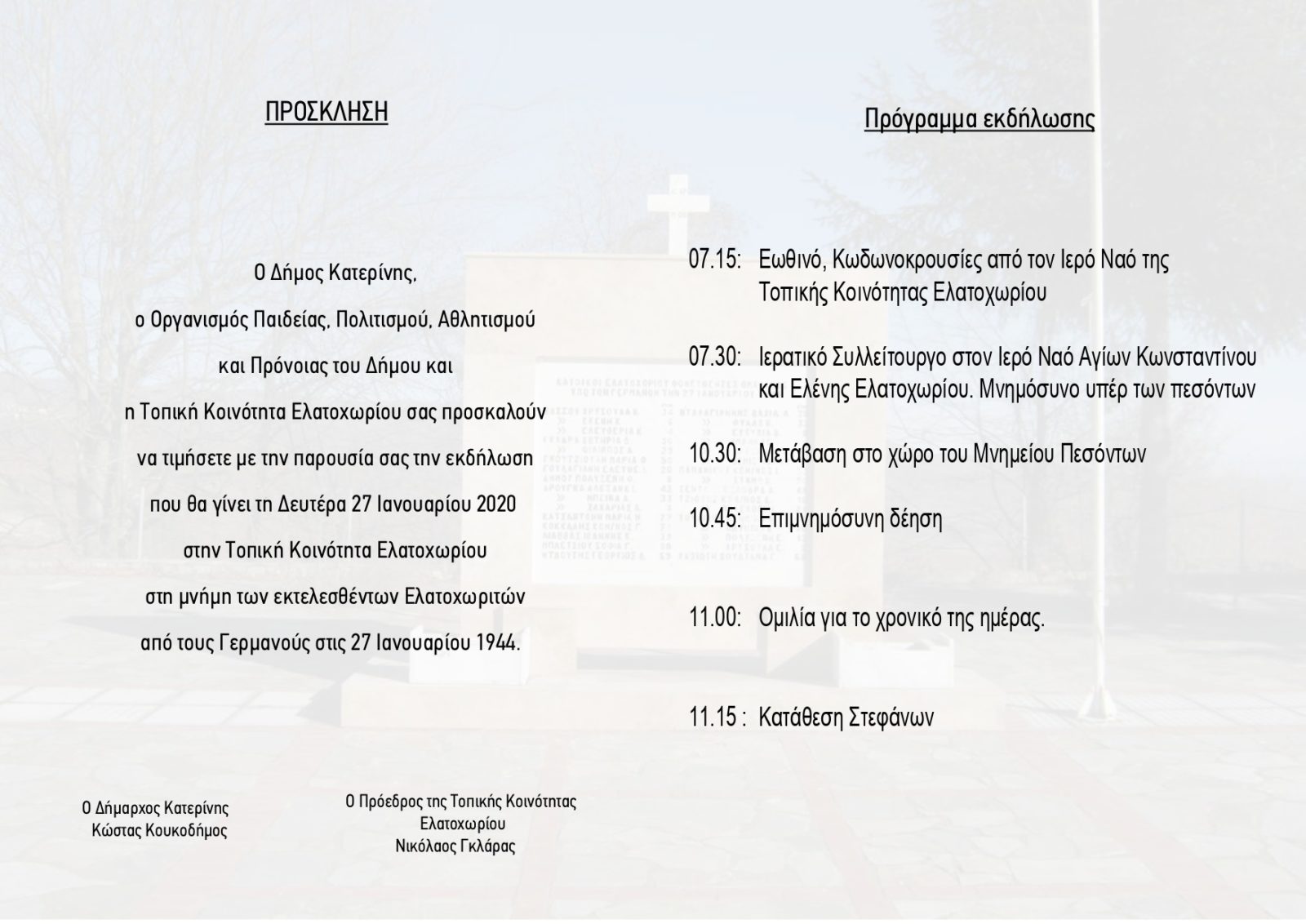 Αρχική Κατερίνη Δήμος Κατερίνης: Εκδήλωση Μνήμης Εκτελεσθέντων Ελατοχωριτών