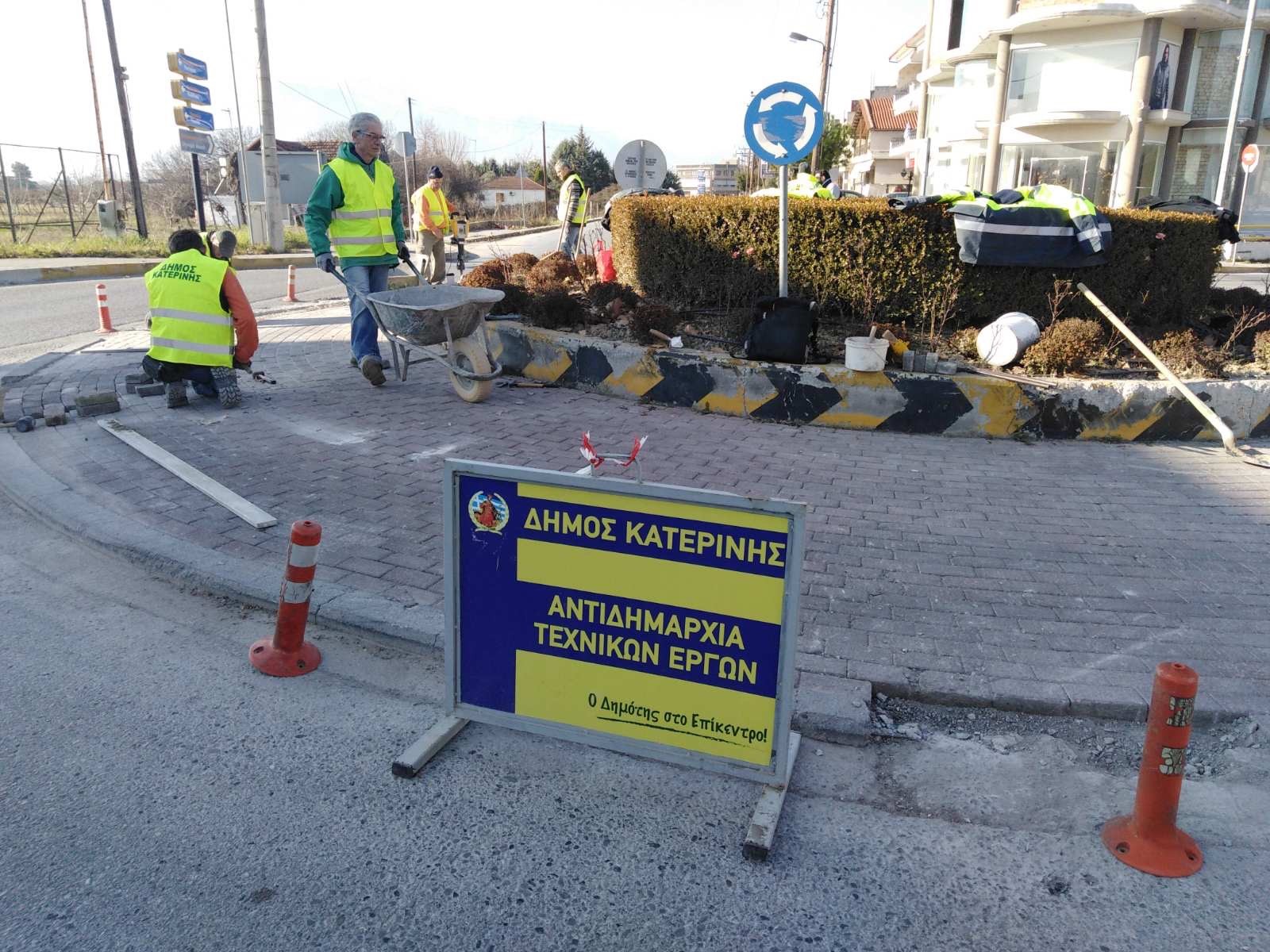 Παρεμβάσεις αποκατάστασης των χρόνιων φθορών στο έρεισμα (κράσπεδο) και στους κυβόλιθους του κυκλικού κόμβου στην Δ.Κ. Περίστασης είναι σε εξέλιξη από συνεργεία της Αντιδημαρχίας Τεχνικών Έργων του Δήμου Κατερίνης.