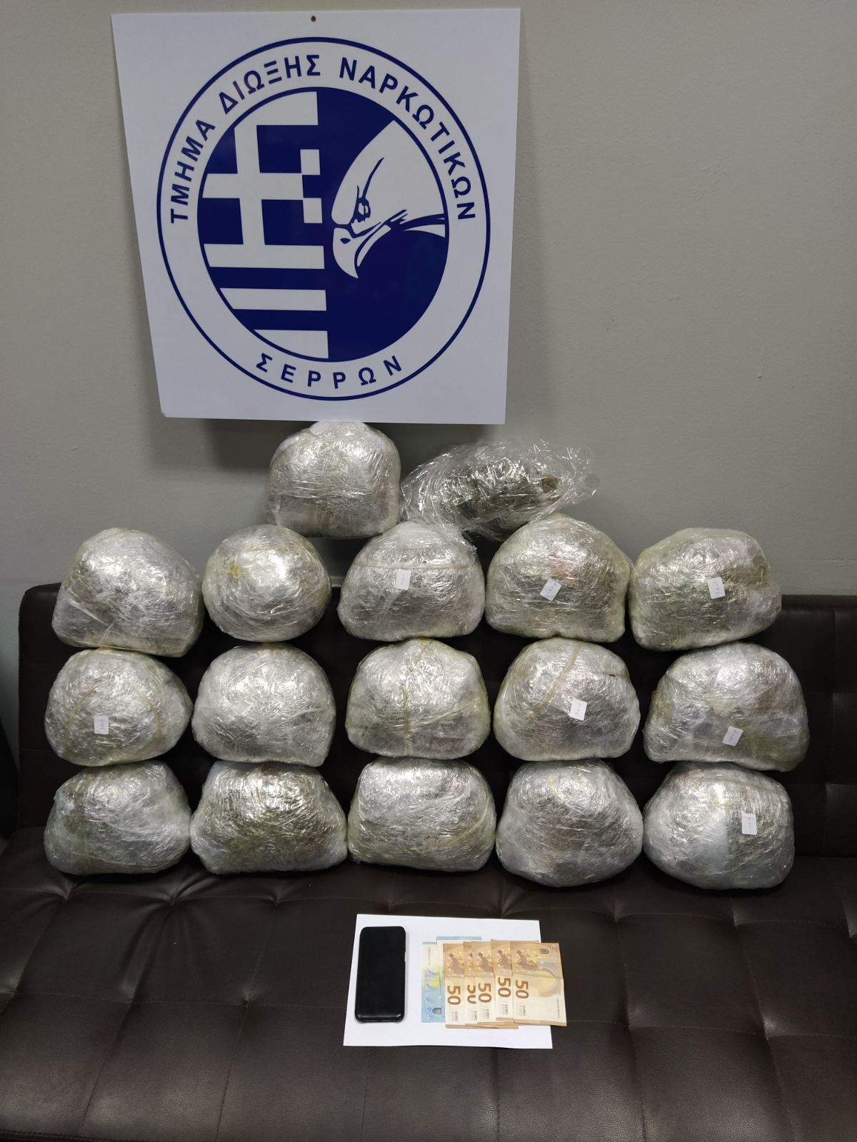 Σύμφωνα με την Αστυνομία, συνολικά κατασχέθηκαν 17 συσκευασίες με κάνναβη συνολικού βάρους 17 κιλών και 371 γραμμαρίων, ένα κινητό τηλέφωνο, το χρηματικό ποσό των 290 ευρώ, τα οποία βρέθηκαν στην κατοχή του, καθώς και ένα αυτοκίνητο ως μέσο μεταφοράς των ναρκωτικών ουσιών. Η ναρκωτική ουσία φαίνεται πως προοριζόταν να διοχετευτεί στη Θεσσαλονίκη και σε περιοχές της Κεντρικής Μακεδονίας.