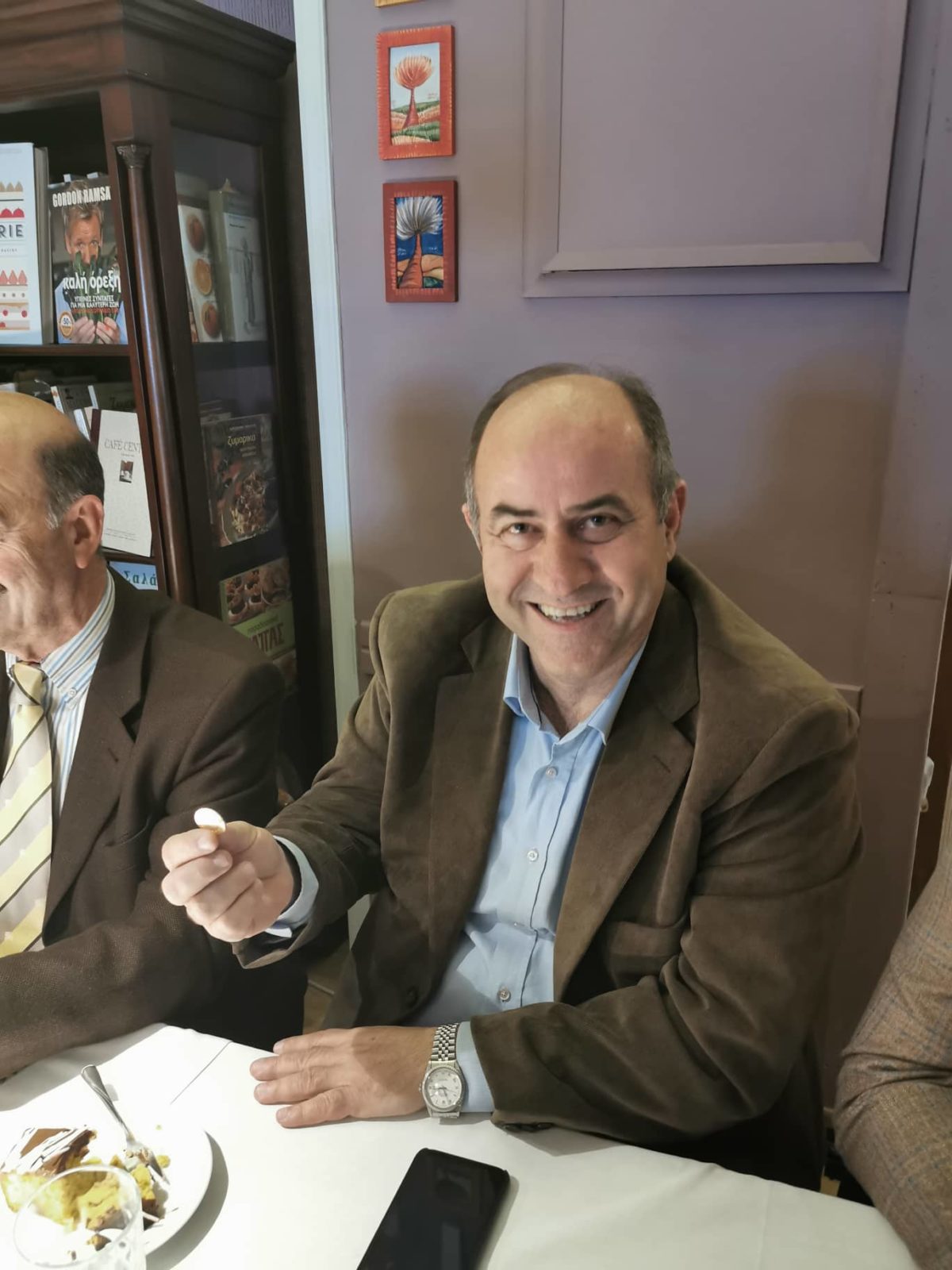 Την πίτα του ΟΡ.ΦΕ.Ο. ευλόγησε ο Πατέρας Διονύσιος και ο τυχερός της ημέρας ήταν … ποιος άλλος … ο οικοδεσπότης του ΟΡ.ΦΕ.Ο., ο Δήμαρχος Δίου-Ολύμπου, ο κος. Γερολιόλιος.