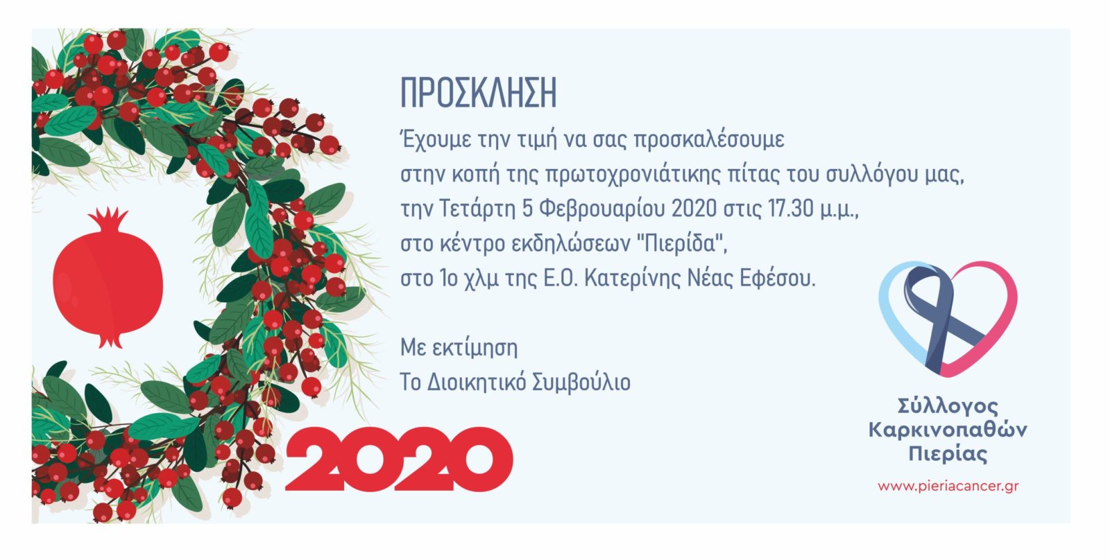 Πρόσκληση για την κοπή Πρωτοχρονιάτικης Πίτας του Συλλόγου Καρκινοπαθών Πιερίας