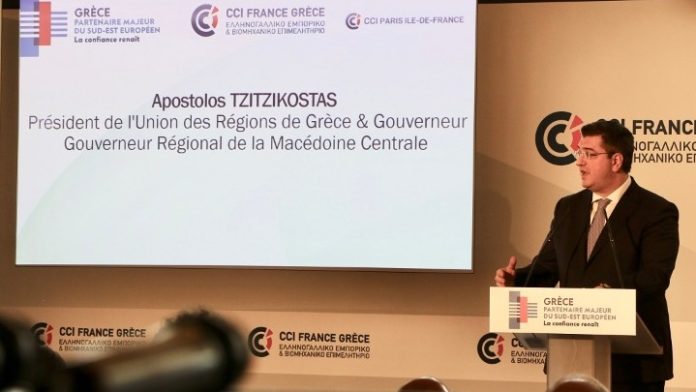 Στον κομβικό ρόλο της Κεντρικής Μακεδονίας και συνολικά των Περιφερειών στην ανάπτυξη των υποδομών και των δημοσίων επενδύσεων στην Ελλάδα αναφέρθηκε ο ο Πρόεδρος της Ένωσης Περιφερειών Ελλάδας, Περιφερειάρχης Κεντρικής Μακεδονίας, Απόστολος Τζιτζικώστας, στην ομιλία του σε εκδήλωση του Ελληνογαλλικού Εμπορικού και Βιομηχανικού Επιμελητηρίου, στο Παρίσι.