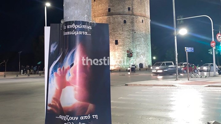 Στην αφίσα αναφέρεται το μήνυμα: “Τα ανθρώπινα δικαιώματα αρχίζουν από τη σύλληψη”.