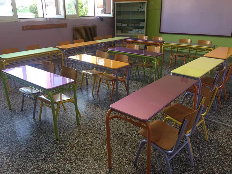 Οι πιο πρόσφατες έρχονται απ’ την Πιερία και το Δημοτικό Σχολείο και Νηπιαγωγείο Καρίτσας, όπου ο Σύλλογος Γονέων και Κηδεμόνων φρόντισε να ανακαινιστούν καρέκλες και θρανία και να βαφτούν με πολλά διαφορετικά και λαμπερά χρώματα.
