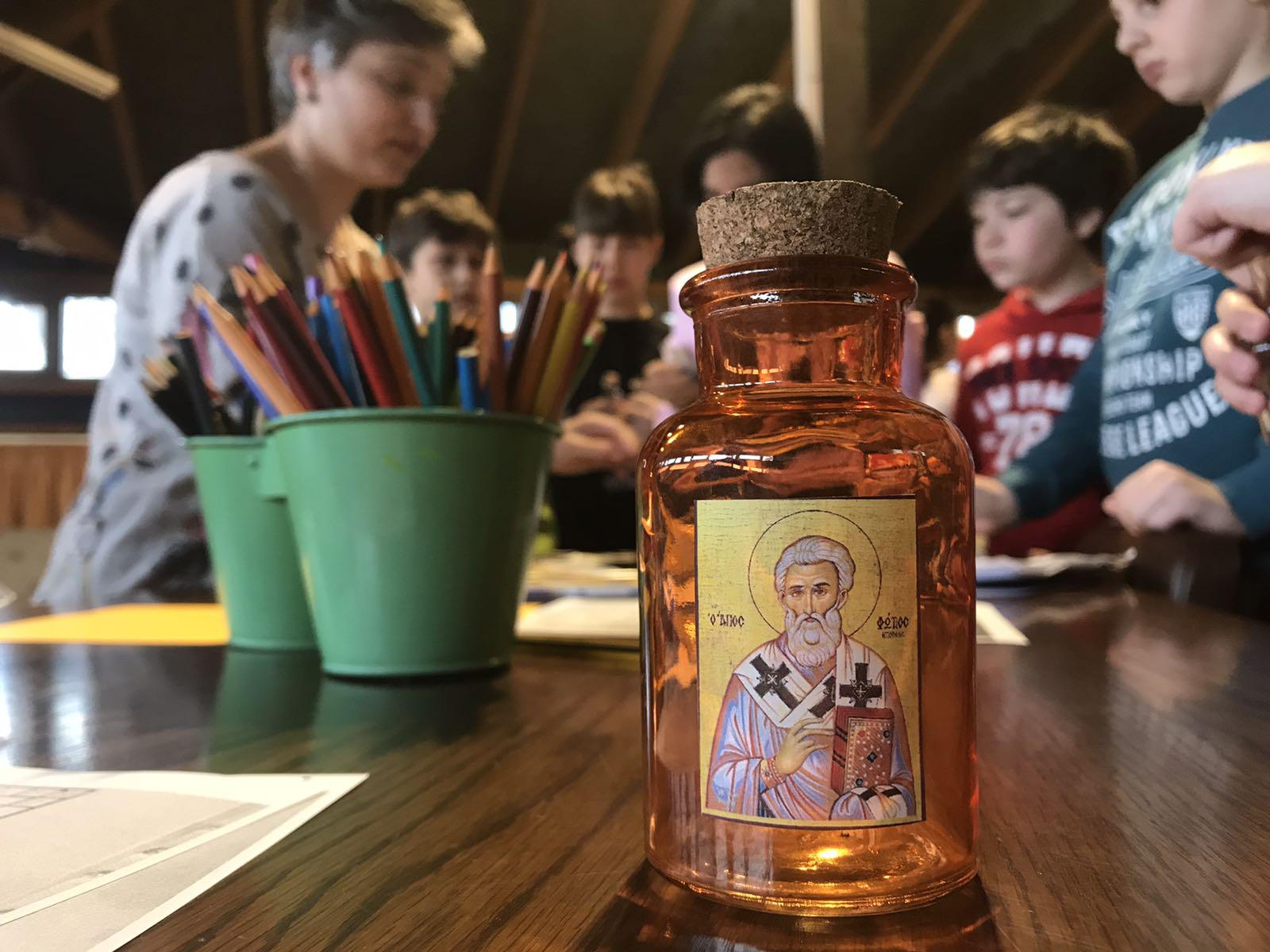 Στο τέλος όλοι μαζί κατασκεύασαν μπουκαλάκια αγιασμού που διακοσμήθηκαν εξωτερική με τη μορφή του Αγίου Φωτίου.