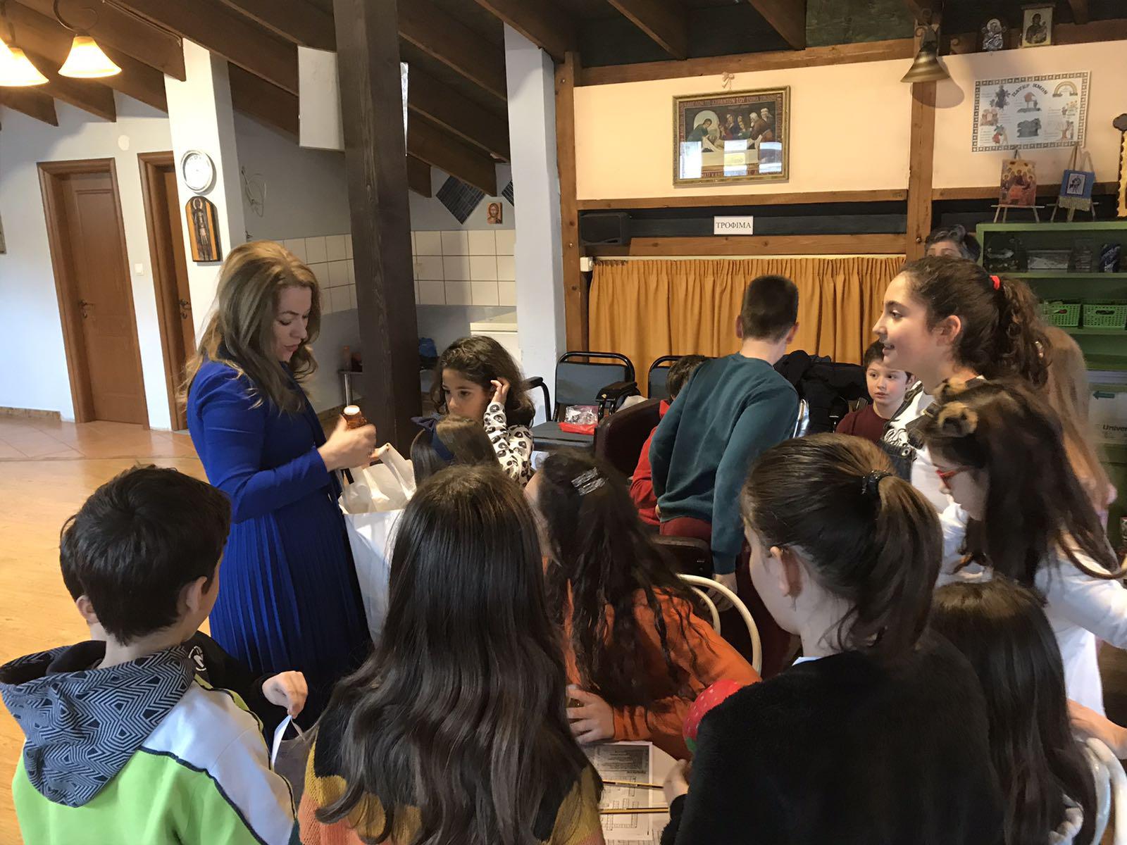 Έπειτα το κάθε παιδί έλυσε το δικό του σταυρόλεξο, ενώ στη συνέχεια οι υπεύθυνες του εργαστηρίου κα Αθηνά Τσιγκαροπούλου, Εκπαιδευτικός –Δρ. Βυζαντινής Αρχαιολογίας και κα Ροδή Ελευθεριάδου-Μελετλίδου, Εκπαιδευτικός Ειδικής Αγωγής μίλησαν στα παιδιά για τον Βίο της Αγίας Αικατερίνης και τον Βίο του Αγίου Κοσμά του Αιτωλού. Αναφέρθηκε μάλιστα ότι στην Άνω Μηλιά Πιερίας υπάρχει το προσκύνημα του Αγίου Κοσμά του Αιτωλού όπου βρίσκεται ο Σταυρός που κάρφωσε ο Άγιος πάνω σε ένα δέντρο, κατά την περιοδεία του στην περιοχή, το οποίο και έχει το χαρακτηριστικό να μην μεγαλώνει.