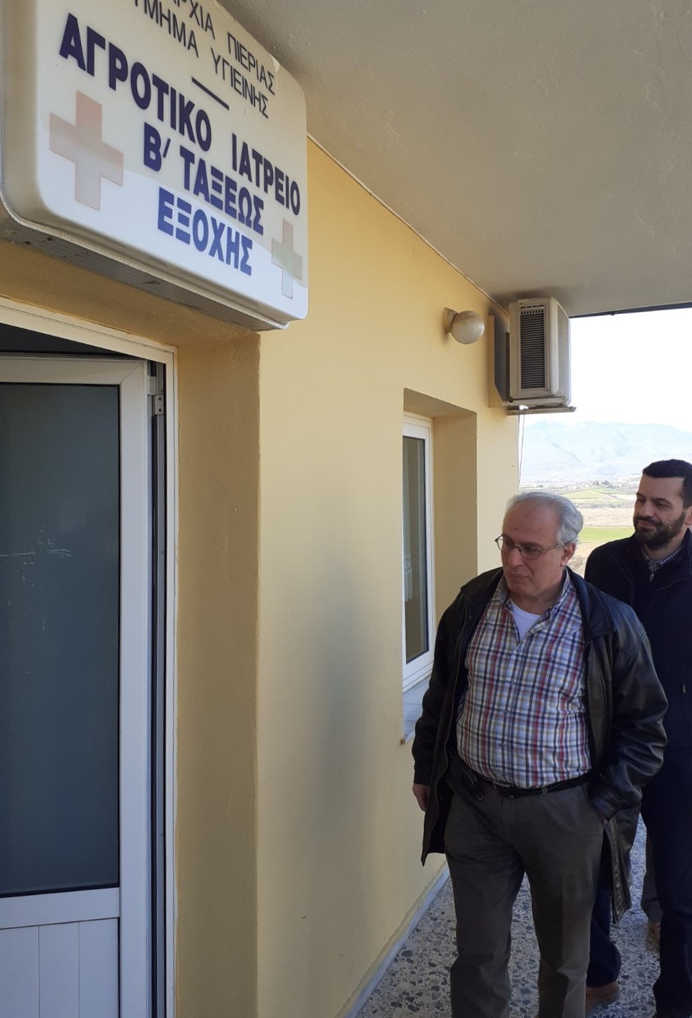 Η επιτακτική ανάγκη εκσυγχρονισμού και αναβάθμισης των αγροτικών ιατρείων πρωτοβάθμιας υγείας του Δήμου Κατερίνης μέσω της βελτίωσης των κατασκευαστικών υποδομών και εγκαταστάσεών τους, καθώς και η έμφαση στην καθαριότητα και υγιεινή των συγκεκριμένων χώρων τέθηκε στο επίκεντρο επιτόπιας αυτοψίας που πραγματοποίησε σήμερα το πρωί, κλιμάκιο αποτελούμενο από τον Αντιδήμαρχο Κοινοτήτων Κώστα Γραμματικόπουλο, τον Υπεύθυνο του Κέντρου Υγείας του Δήμου, ιατρό Κώστα Σαρηγιαννίδη, καθώς και υπηρεσιακούς παράγοντες.