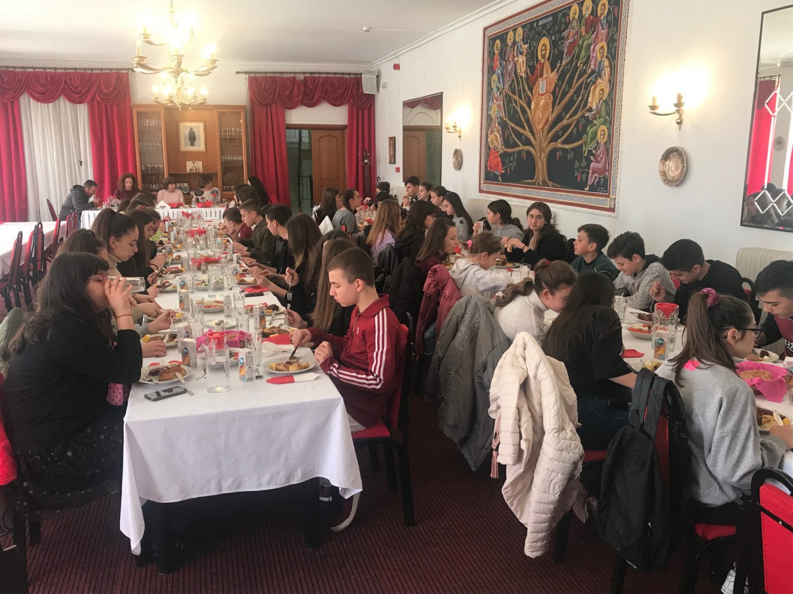 Τέλος ακολούθησε γεύμα για τους μαθητές όπου ο Πρωτοπρεσβύτερος π. Κυριάκος Κοκελίδη μετέφερε τις ευλογίες του Σεβασμιωτάτου Ποιμενάρχη κ. Γεωργίου και έδωσε στα παιδιά μια εικόνα του Αγίου Ενδόξου Ιερομάρτυρος Μελετίου, Επισκόπου Κίτρους ως ενθύμιο της επίσκεψής τους στην Ιερά Μητρόπολη Κίτρους και τους ευχήθηκε καλή πρόοδο, δύναμη και υγεία.