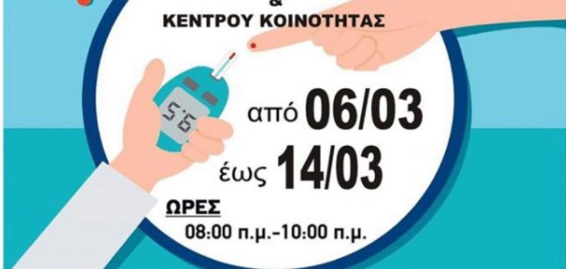 Στο πλαίσιο της κοινωνικής μέριμνας, από 6 έως 14 Μαρτίου 2020 θα πραγματοποιηθούν σε όλες τις Δημοτικές Ενότητες του δήμου Πύδνας-Κολινδρού μετρήσεις σακχάρου. Οι μετρήσεις θα είναι δωρεάν και θα πραγματοποιούνται από 08.00 έως 10.00 στους παρακάτω χώρους και κατά τις αντίστοιχες ημερομηνίες: