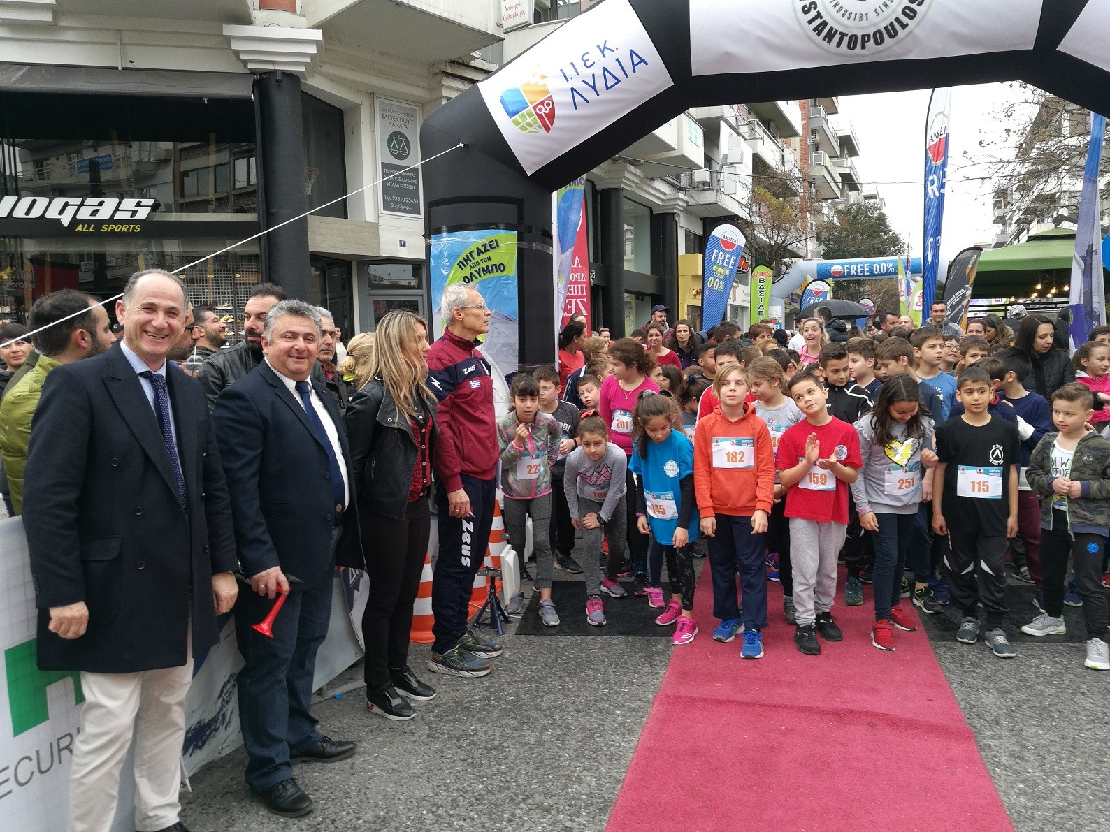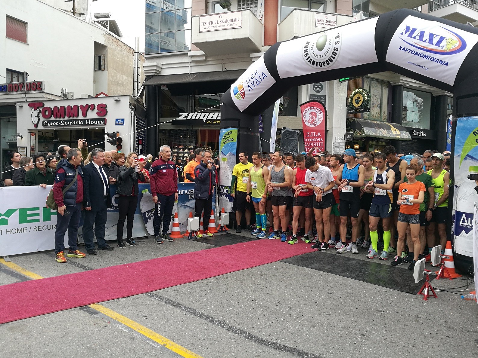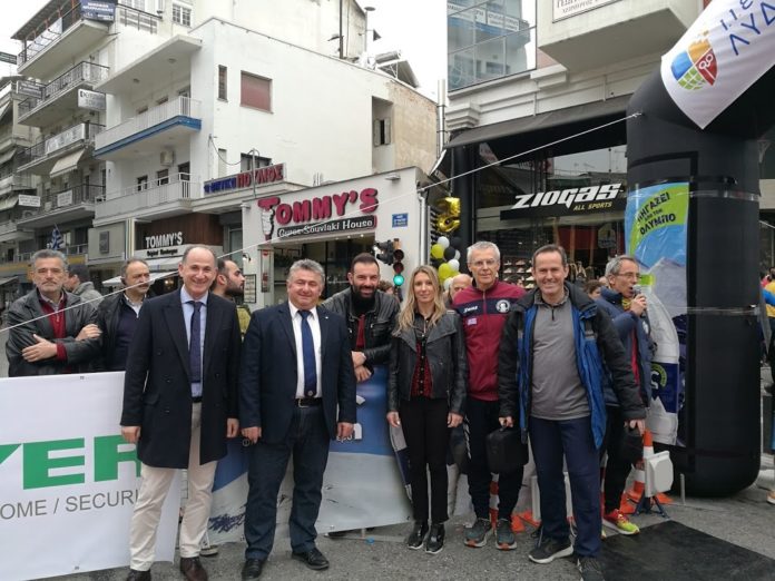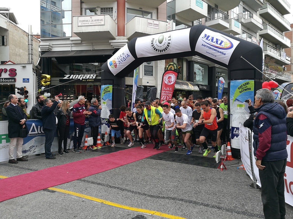Το σύνθημα της εκκίνησης δόθηκε αρχικά για τον Ημιμαραθώνιο και στην συνέχεια σταδιακά για τα 5 χλμ για όλες τις ηλικίες και για τα 1000 μ. του παιδικού αγώνα από τον Πρόεδρο του ΑΠΣ Δρομέων Πιερίας «ΖΕΥΣ» Αλέξανδρο Πούλιο. Επίσης, εκ μέρους του Δημάρχου Κατερίνης Κώστα Κουκοδήμου, από τους αντιδημάρχους Γιώργο Κυριακίδη και Γιώργο Τσιαλό αντίστοιχα, τον δημοτικό σύμβουλο Γιάννη Μπεινά, καθώς και από την Ολυμπιονίκη – επισμηναγό Κατερίνα Θάνου, τον έφορο του αγώνα – δημοτικό σύμβουλο Μιχάλη Γεωργιάδη κ.α. μέλη του Δ.Σ. του συλλόγου. Νωρίτερα τηρήθηκε ενός λεπτού σιγή στη μνήμη του αθλητή – μέλους του συλλόγου Λάζαρου Σιδηρόπουλου.