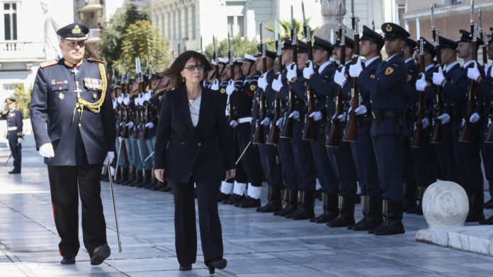 Με νεύματα ευγενείας έναντι χειραψίας η υποδοχή της Κ. Σακελλαροπούλου