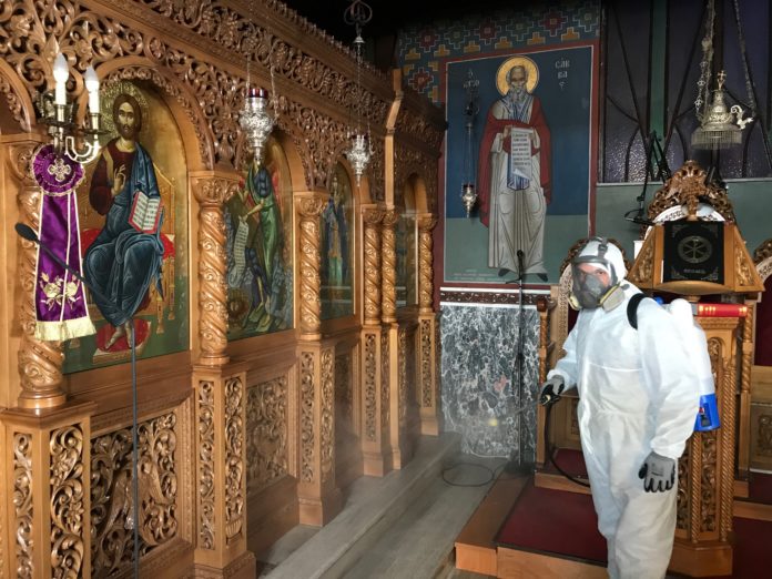Στο πλαίσιο των μέτρων που λαμβάνει η Ιερά Μητρόπολη Κίτρους, Κατερίνης και Πλαταμώνος για την καταπολέμηση της εξάπλωσης του κορωνοϊού, ήδη από την Παρασκευή 13 Μαρτίου, κατόπιν οδηγιών του Σεβασμιωτάτου Μητροπολίτη κ. Γεωργίου, ξεκίνησε η απολύμανση των Ιερών Ναών της Ιεράς Μητροπόλεως.