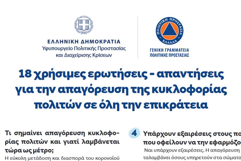 18 ερωτήσεις και απαντήσεις για την απαγόρευση της κυκλοφορίας