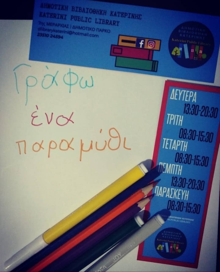 Η Δημοτική Βιβλιοθήκη Κατερίνης καλεί όλα τα παιδιά και τους γονείς να φτιάξουμε όλοι μαζί μια ιστορία. Οι μεγάλοι ας βοηθήσουν τους μικρότερους και οι μικρότεροι ας συνεχίσουν την ιστορία. Η ιστορία μας ξεκινάει έτσι: