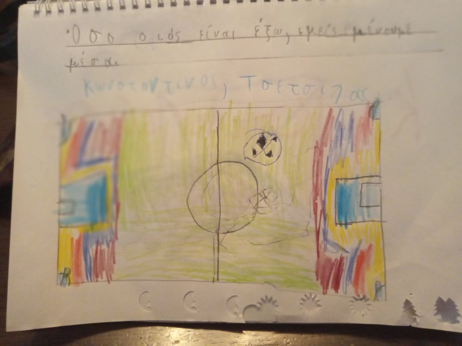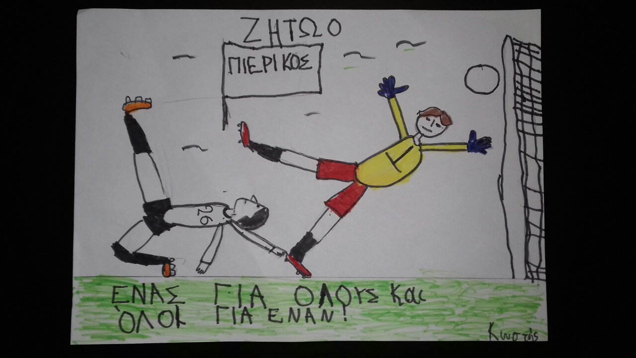 Η ζωγραφιά είναι μια δικλείδα επικοινωνίας, έτσι οι μικροί ποδοσφαιριστές μας υπό την καθοδήγηση του προπονητή τους Κώστα Κραγιόπουλο αποτύπωσαν στις ζωγραφιές τους το μήνυμα που κρύβεται πίσω από μια ζωγραφιά, όπως γνωρίζουμε παιδαγωγικά η ερμηνεία μιας ζωγραφιάς αποκαλύπτει ένα βαθύτερο νόημα για όσα σκέφτεται και αισθάνεται ένα παιδί βλέποντας τον κόσμο γύρω του.