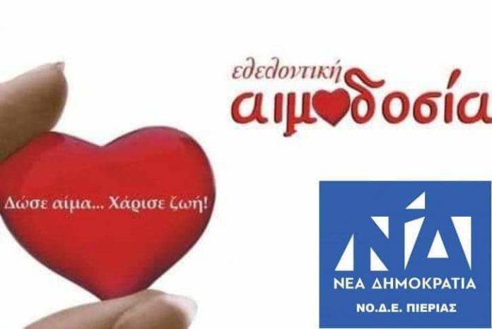 ΝΟ.Δ.Ε./ΟΝΝΕΔ Πιερίας: Κάλεσμα σε εθελοντική αιμοδοσία