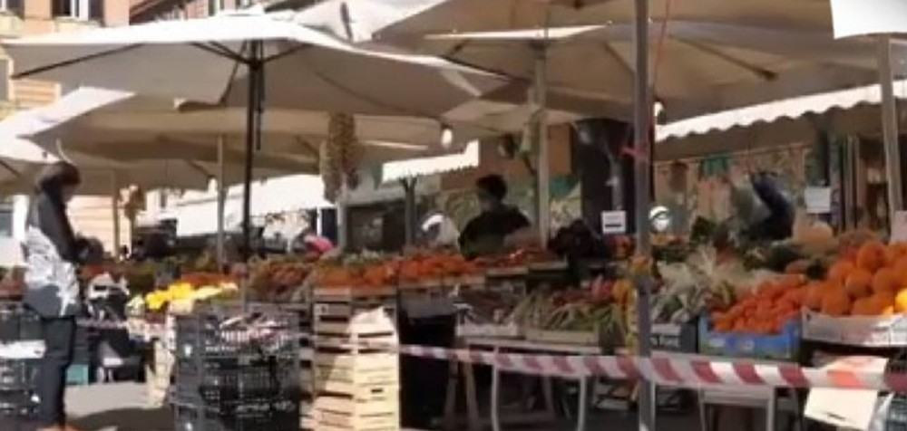 Έτσι συμβαίνει και σε λαϊκή αγορά της Ρώμης, όπου βέβαια ο κόσμος δεν μπορεί να ψωνίσει όπως πριν τον κορονοϊό, αλλά η λειτουργία της αποτελεί σίγουρα ένα βήμα προς την «κανονικότητα».