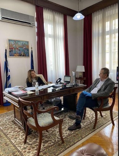 Ο Δήμαρχος ενημέρωσε την κ. Αντωνίου για τις δράσεις και τα προγράμματα κοινωνικής προστασίας που εφαρμόζει ο δήμος Κατερίνης από την πρώτη στιγμή για την προστασία τόσο των δημοτών όσο και των εργαζόμενων στο δήμο και τις υπηρεσίες του.
