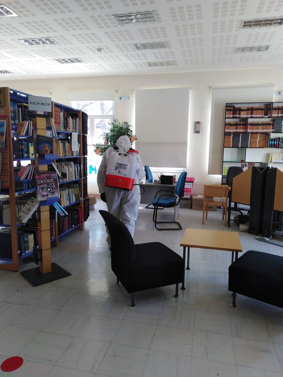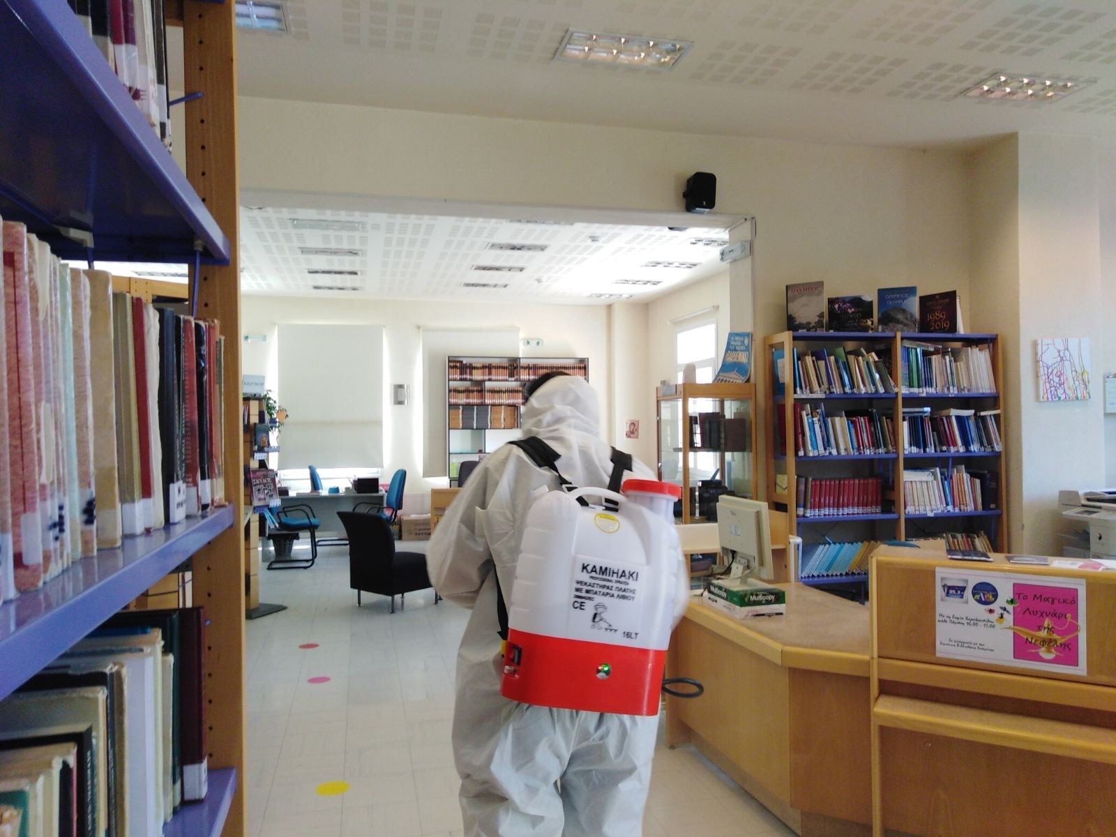 Παράλληλα, απολύμανση έγινε και στη Δημοτική Βιβλιοθήκη Κατερίνης, ενώ από τα ειδικά συνεργεία απολυμαίνονται διαρκώς ΑΤΜ Τραπεζών, πλατείες, παιδικές χαρές, στάσεις λεωφορείων, παγκάκια, δημοτικά κτίρια κ.α.