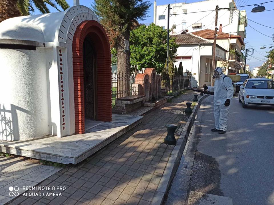 Στο πλαίσιο αυτό, απολύμανση έγινε από ειδικά συνεργεία που διέθεσε ο Δήμος Κατερίνης, στο στρατόπεδο ΠΟΥΛΟΥ (680 ΠΑΠ/3 ΛΠ) στον Σβορώνο, στον Ερυθρό Σταυρό και στον Ιερό Ναό Αγίας Παρασκευής.