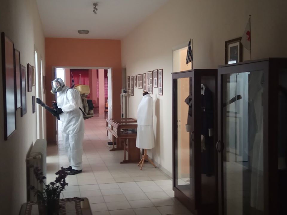 Έπειτα από την καθιερωμένη δράση ανθρωπιστικής βοήθειας του Τμήματος Νοσηλευτικής, προς τις αδύναμες οικονομικά οικογένειες, με την προετοιμασία και διάθεση των “Δεμάτων Αγάπης” που περιλάμβαναν είδη πρώτης ανάγκης, οι εργασίες απολύμανσης υλοποιήθηκαν το Σάββατο 11 Απριλίου, με τον συντονισμό του Αντιδημάρχου κ. Κυριακίδη Γεωργίου και κάλυψαν όλους τους χώρους των κτιριακών εγκαταστάσεων και του αύλειου χώρου.