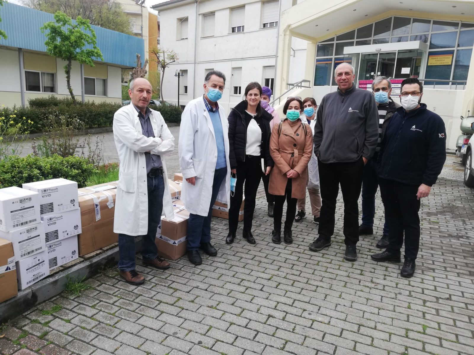 Στο Γενικό Νοσοκομείο Λάρισας (που διαθέτει κλινική για τον ιό) προσφέραμε, κατόπιν σχετικού αιτήματος, 10 αντλίες χορήγησης φαρμάκων, 28 ψηφιακά πιεσόμετρα, 30 παλμικά οξύμετρα, 50 στολές ολικής προστασίας (επαναχρησιμοποιούμενες), 50 γυαλιά προστασίας, 25 στηθοσκόπια, 10.000 γάντια νιτριλίου, 2.000 χειρουργικές μάσκες