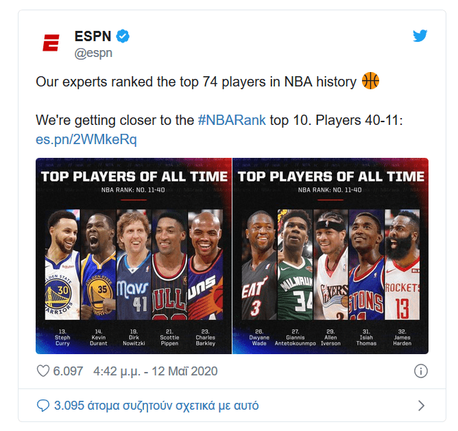 Το ESPN παρουσίασε τους καλύτερους NBAers όλων των εποχών