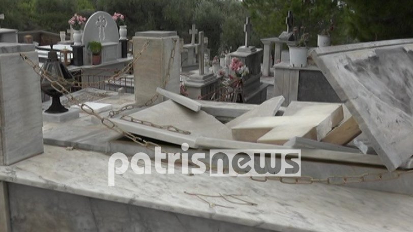 Ενώ, στον Άγιο Ηλία Ζαχάρως, οι ισχυροί άνεμοι ξήλωσαν ακόμη και μαρμάρινες επενδύσεις από τάφους, στο κοιμητήριο της εκκλησίας του Προφήτη Ηλία, όπως αναφέρει το patrisnews.com.