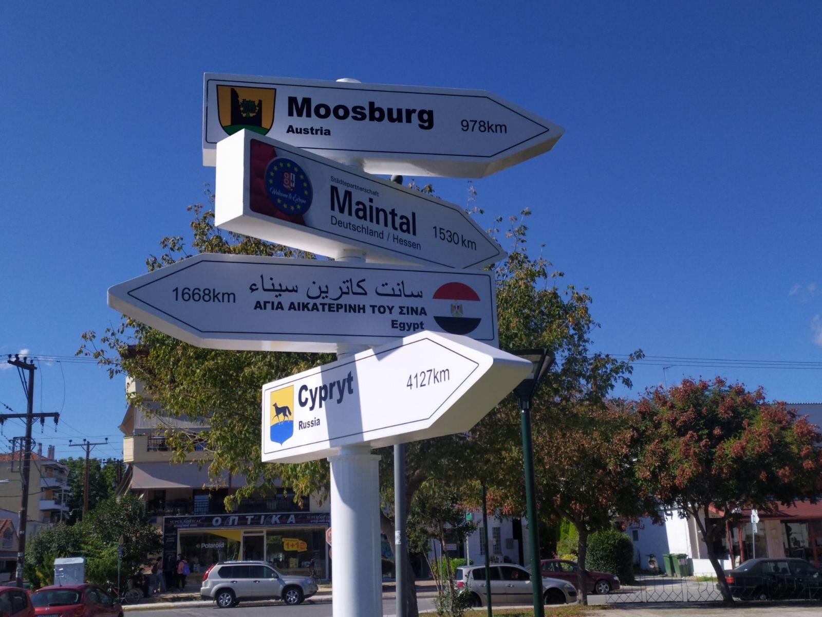 Δήμος Κατερίνης : Η πινακίδα των αδελφοποιημένων πόλεων στην πλατεία Κοκκινοπλιτών