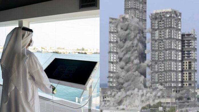 Στην πρωτεύουσα της χώρας Άμπου Ντάμπι, την Παρασκευή (27/11), μια κατασκευαστική εταιρεία κατεδάφισε τους τέσσερις εμβληματικούς πύργους του Mina Plaza, των 144 ορόφων και 165 μέτρων, μέσα σε 10 δευτερόλεπτα, δημιουργώντας νέο ρεκόρ Γκίνες!