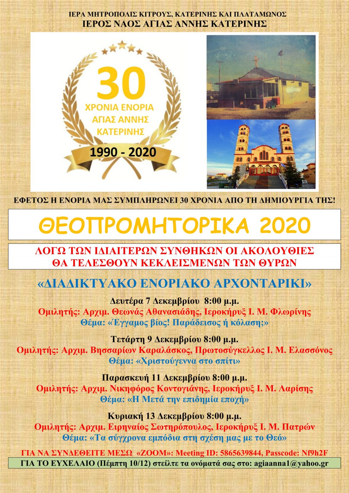 Κατερίνη : Ιερός Ναός Αγίας Άννης – Διαδικτυακές ομιλίες