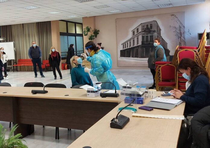 Αντιγονικό τεστ ταχείας ανίχνευσης (rapid tests) κρουσμάτων κοροναϊού σε εργαζόμενους στις υπηρεσίες του Δήμου Κατερίνης διενεργήθηκε σήμερα νωρίς το πρωί στο Δημαρχείο, από κινητή μονάδα του Εθνικού Οργανισμού Δημόσιας Υγείας, στο πλαίσιο των προληπτικών μέτρων περιορισμού μετάδοσης του ιού.