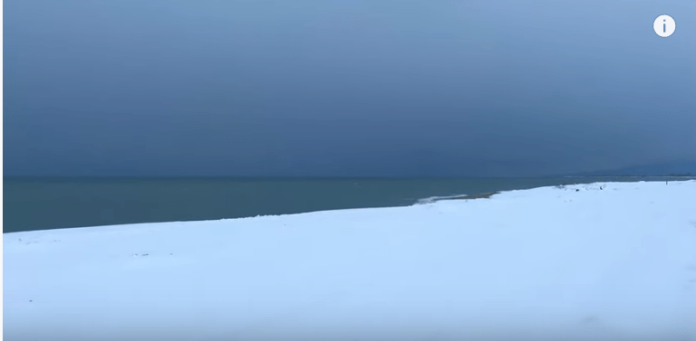 Το χιόνι έχει στρωθεί στην άμμο δημιουργώντας μια πανέμορφη εικόνα του χιονιού και της θάλασσας της Κατερίνης.