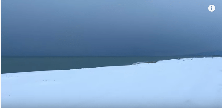 Μαγικές είναι οι εικόνες από την Ολυμπιακή ακτή, όπου οι αμμουδιά μετατράπηκε  σε πίστα του σκι, δίνοντας ένα υπέροχο θέαμα.