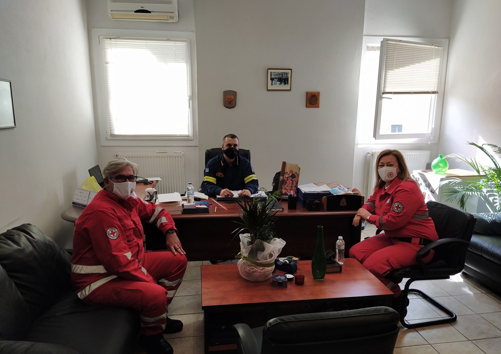 Η επίσκεψη πραγματοποιήθηκε σε εγκάρδιο κλίμα, ως απόρροια της έως τώρα ουσιαστικής συνεργασίας των Εθελοντών Σαμαρειτών-Διαωστών με το Πυροσβεστικό Σώμα, στο γραφείο του νέου Διοικητή την Πέμπτη 11 Φεβρουαρίου.
