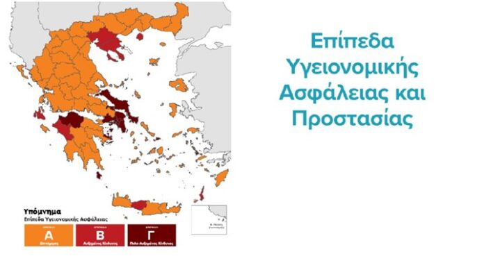 Επικαιροποιήθηκε ο χάρτης υγειονομικής ασφάλειας και προστασίας από τον κοροναϊό, με πολλές περιοχές της χώρας να αλλάζουν χρώμα ανάλογα με το επιδημιολογικό φορτίο.
