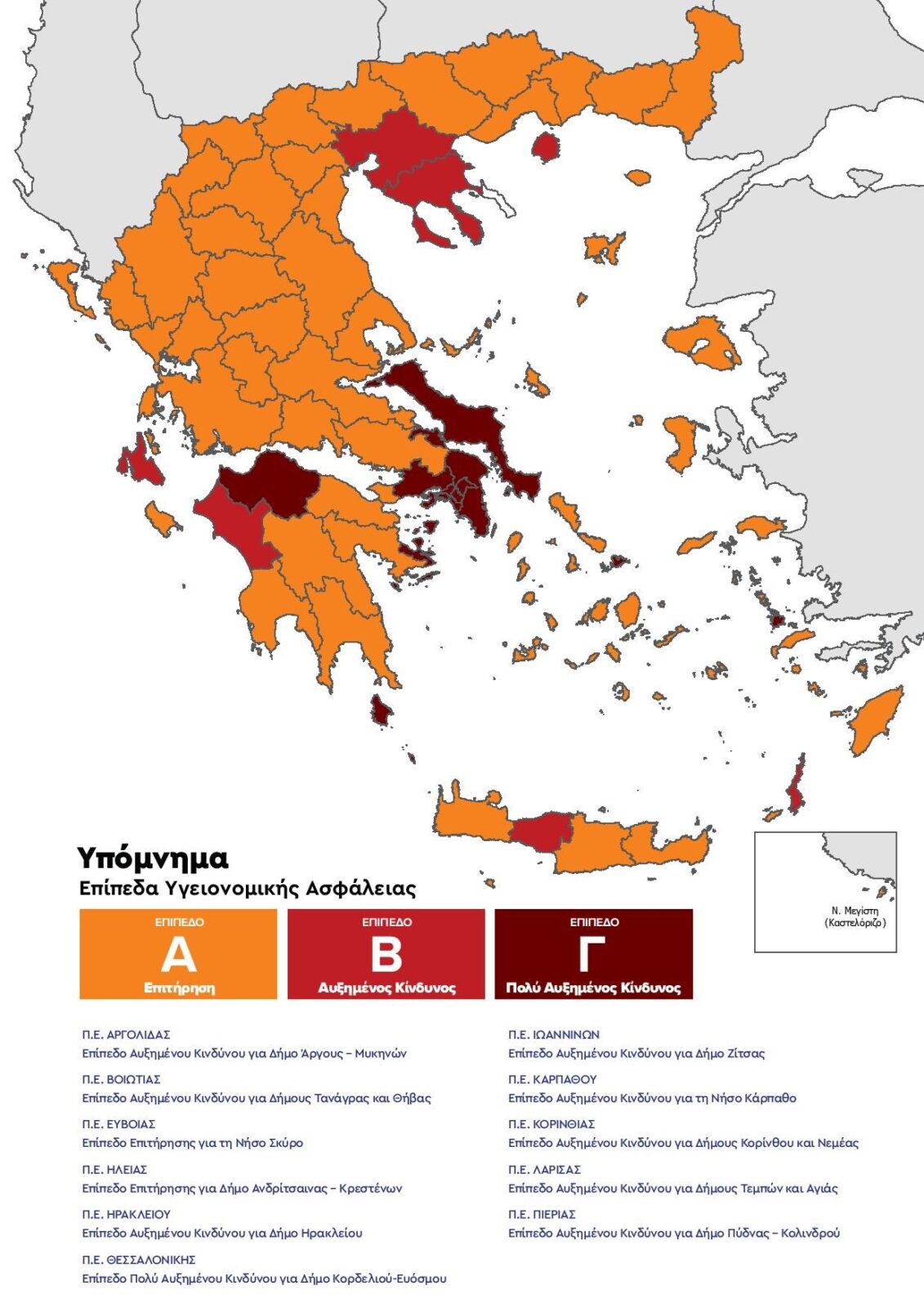Επομένως, στο επίπεδο αυξημένου κινδύνου (κόκκινο), είναι πλέον οι εξής περιοχές: