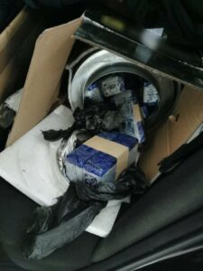 Έπειτα από έρευνα που διενεργήθηκε στο αυτοκίνητο, βρέθηκαν κρυμμένα, κάτω από ηλεκτρικό πατίνι και εντός φίλτρου ενεργού άνθρακα που περιέχονταν εντός χάρτινων συσκευασιών, 98 δέματα ηρωίνης συνολικού βάρους 51 κιλών και 345 γραμμαρίων τα οποία και κατασχέθηκαν.