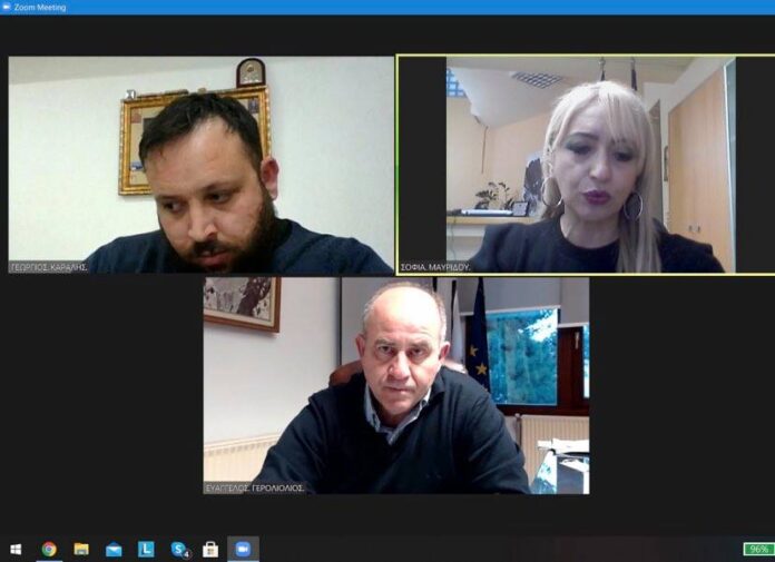 Τηλεδιάσκεψη πραγματοποίησε το απόγευμα της Τετάρτης 17 Μαρτίου η Αντιπεριφερειάρχης Πιερίας με τον Δήμαρχο Δίου-Ολύμπου κ. Ευάγγελο Γερολιόλιο και τον Αντιδήμαρχο Τουρισμού του Δήμου κ. Γεώργιο Καραλή.