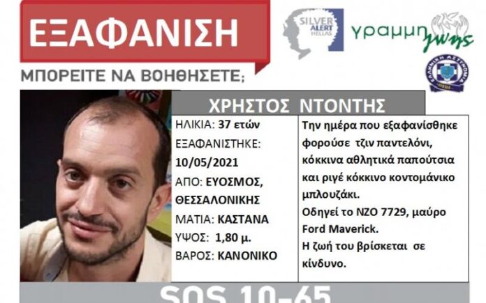 Σώος εντοπίστηκε ο 37χρονος που είχε εξαφανιστεί χθες, Δευτέρα 10 Μαΐου, από το σπίτι του στον Εύοσμο Θεσσαλονίκης.