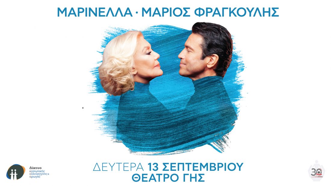 ΜΑΡΙΝΕΛΛΑ και ΜΑΡΙΟΣ ΦΡΑΓΚΟΥΛΗΣ, δίνουν την χαρά και τη δύναμη στα κοινό τους, με το μοναδικό τους ρεπερτόριο και την ασύγκριτη σκηνική τους ενέργεια, στηρίζοντας έργο του Συλλόγου Φίλων των Καρκινοπαθών Παιδιών ΣΤΟΡΓΗ και του Δικτύου Κοινωνικής Αλληλεγγύης & Αρωγής.