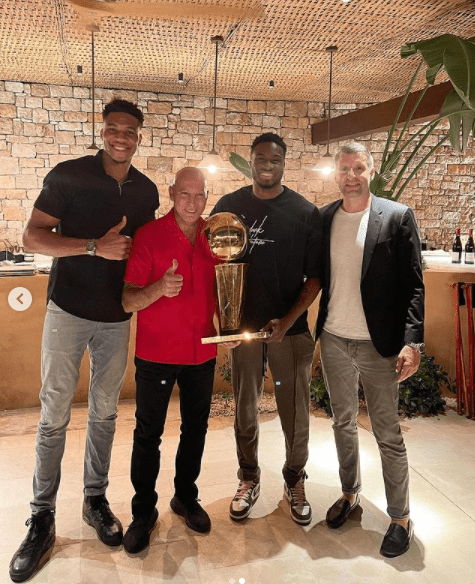 “Αυτός είναι ο λόγος που πολλοί άνθρωποι ασχολούνται με το μπάσκετ στην Ελλάδα 🙏🏽🇬🇷🏆..!! Είδα τη φωτιά στα μάτια του.. Τι βραδιά 🔥 Nick the Greek x Greek Freak x Elevator x Theo” έγραψε στη λεζάντα ο Αντετοκούνμπο.
