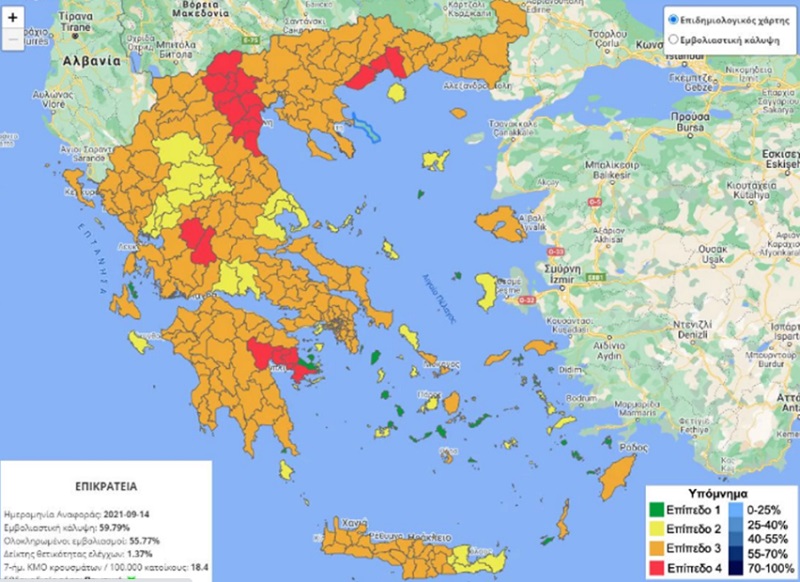 Ο επιδημιολογικός χάρτης θα παράγεται εβδομαδιαίως σε επίπεδο Περιφερειακής ενότητας και ειδικά για τα νησιά σε επίπεδο Δήμου. Σκοπός του επιδημιολογικού χάρτη είναι η ενημέρωση των Ελλήνων και των επισκεπτών στη χώρα μας, καθώς και η σύνδεση των επιπέδων ετοιμότητας με μέτρα δημόσιας υγείας.