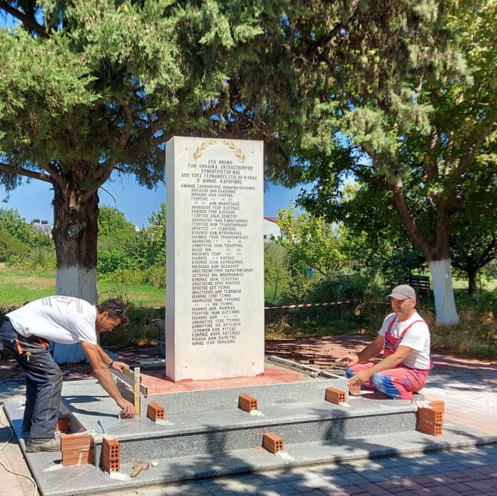 Τέλος, υλοποιήθηκαν και οι προγραμματισμένες εργασίες για τη β’ φάση ανάπλασης – αισθητικής αναβάθμισης του μνημείου πεσόντων στον Σιδηροδρομικό Σταθμό, στην οδό Διγενή Ακρίτα. Ο λόγος για το μνημείο ομαδικής εκτέλεσης από τους Γερμανούς των σαράντα τριών Ελλήνων πατριωτών (Αη Δημητρινών, Λιβαδιωτών και του αείμνηστου Δημάρχου Κατερίνης Αιμιλίου Ξανθόπουλου), τον Φεβρουάριο του 1943, το βάθρο του οποίου επενδύθηκε με μάρμαρο.